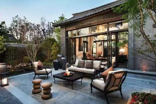中式庭院色彩应用较中和,多为灰白色。构图上以曲线为主,讲究曲径通幽,忌讳一览无余。